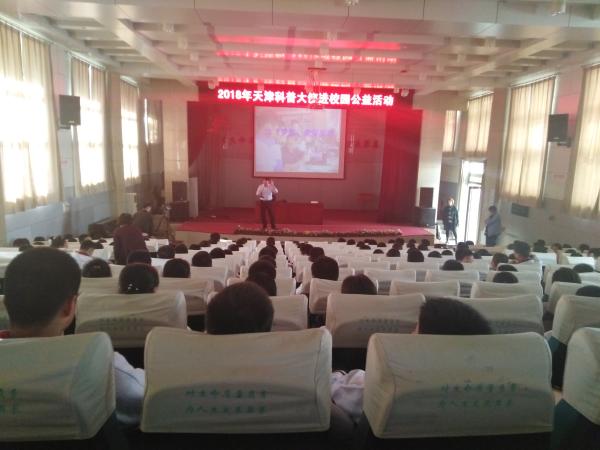 10月26日,“天津科普大使进校园活动”在静海举行。2018年天津科普大使、全国十佳科技辅导员、全国最美乡村教师刘月升为静海区200余名科技教师和静海实验中学近300名学生分别做了题为《我心中的青少年科技创新大赛》、《放飞梦想我爱发明》的科普讲座。报告介绍了青少年科技创新大赛的历史沿革和内容脉络,为一线青年教师提供了项目选题、创新项目技巧等攻略。同时结合实例,帮助学生突破发明难的心理围墙,阐释创新发明无处不在,介绍发明方法和技巧,激发学生学发明爱发明的热情。本次活动由市青少年科技中心主办,是2018年天津科普大使科普活动之一。